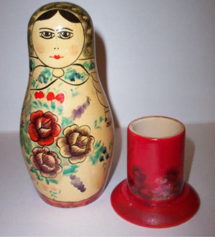 The outer doll in this set is very similar to AA07, but it has a single solid doll inside. This set may be mismatched because the faces are somewhat different.