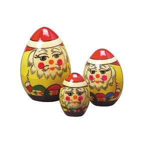 Here we have a pair of Semenov maiden and male, salt and pepper shakers. Each 5 1/4" tall, and open at the waist. Maiden has "Salt" lettered at bottom front. One shaker hole at top of head. Male has "Pepper" labeled at bottom front. Three shaker holes at top of head. With paper labels on bottom, "Hand Made in Russia".