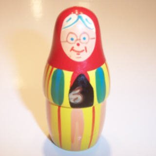 This set of 4 nesting dolls is in very good condition. The smallest doll has some crazing and paint loss due to her age. These dolls have feet painted on the bottom of the two largest dolls. The girl doll has two pigtails made of yarn, and the baby has a single tuft of yarn hair.