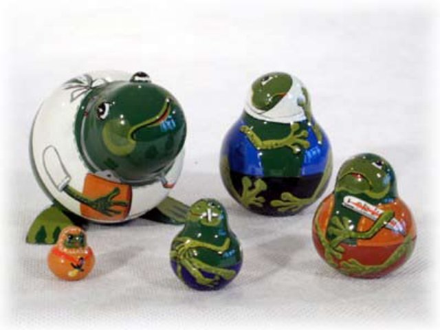 From Russia, with love comes this Imperial Cat and Mouse duo - here sporting vivid floral robes. Royal red in color with orange flowers and decorated with glittery gold filigree. For cat-lovers around the world.