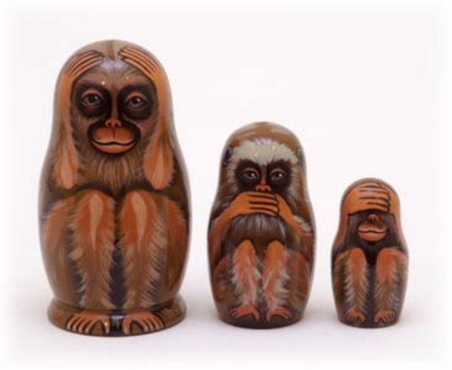 Three adorable panda bears nest together in this matryoshka. The largest one munches on a stalk of bamboo, which makes up 99% of the panda's diet. Hand painted and decoupaged at the Golden Cockerel workshop in St. Petersburg, Russia.