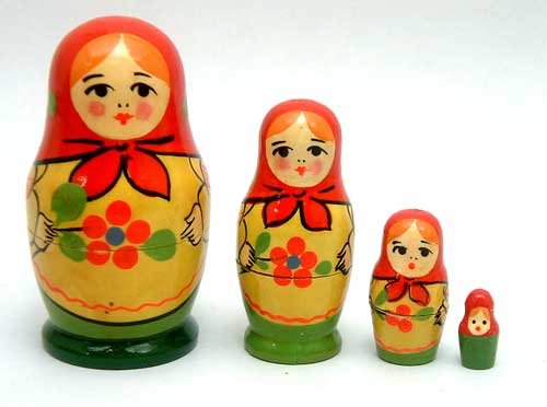 Perm Hospitality Maidens were made in the Krasnokamsk Children’s Toy Factory. This is a very unusual set with a unique shape. The largest doll opens at the neck, and contains a solid peg like inner doll. The larger doll is 3" and the smaller doll is 1 3/4". Light wear, chip to back. Contains a paper inside in Cyrillic.