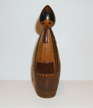 This Ukrainian doll stands 6" tall. The large doll has a small chip by her right arm, near the seam; otherwise the doll is in good condition. There are a total of 8 dolls in the set.