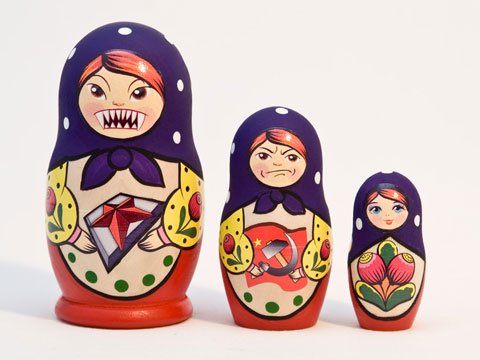 Russia welcomes the Obama family to the White House with this nesting doll. President Barack Obama, First Lady Michelle, daughters Malia and Sasha, and the Statue of Liberty all nest together. Barack Obama holds the American flag and gives a thumbs up. Turn him over to find his entire Inauguration Day speech written on the back! Michelle is dressed in her yellow Inauguration Day dress. Malia wears a button that reads "YES WE CAN!" and Sasha wears a button that reads "YES WE WILL!" The perfect momemto of this time of change. Hand painted and decoupaged at the Golden Cockerel workshop in St. Petersburg, Russia.