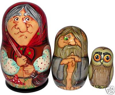 The doll reads "Museum of Communism" on the back, as the concept for this Russian doll was derived from a poster advertising the Museum of Communism in Prague, Czech Republic. Not the first time, and certainly won't be the last time, Matryoshka is used as a vehicle of political satire. We only hope that Vladimir Putin pays attention and the past does not repeat itself so quickly. Hand painted and decoupaged at the Golden Cockerel workshop in St. Petersburg, Russia.